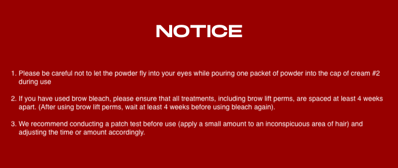 Q. How many uses are available per box? A. Each box contains 6 packets of powder and 1 tube of cream. Since one packet of powder is measured for one use, you can use it a total of 6 times. Q. How long does the color last after one dyeing session? A. On average, the color lasts for about 4 weeks after one use. It is recommended not to perform other dyeing/perming treatments during this period. Q. How can I adjust the color myself? A. From a soft brown color to a light golden brown, the hair color will lighten within approximately 1 minute after applying brow bleach. However, the lightening effect may vary depending on individual hair condition, thickness, time, and temperature, so we recommend performing a patch test on a small, inconspicuous area of hair before use. Q. Can I use it on sensitive skin? A. Brow bleach has undergone skin irritation tests and is suitable for sensitive skin. We have carefully considered even sensitive skin types.