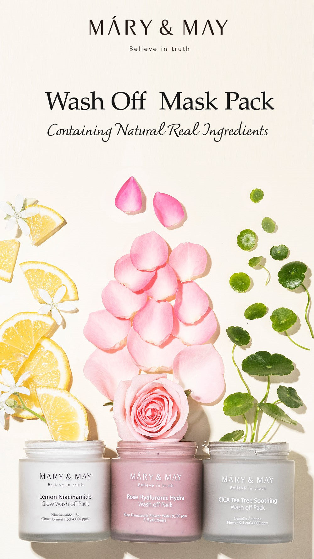 “Mary&May Cica Tea Tree Soothing Wash Off Pack A wash-off pack that contains real Centella asiatica leaf and flower, which has excellent anti-inflammatory and soothing effects, Houttuynia cordata extract + Tea tree extract to soothe irritated skin and care for sebum and wastes, 125g”