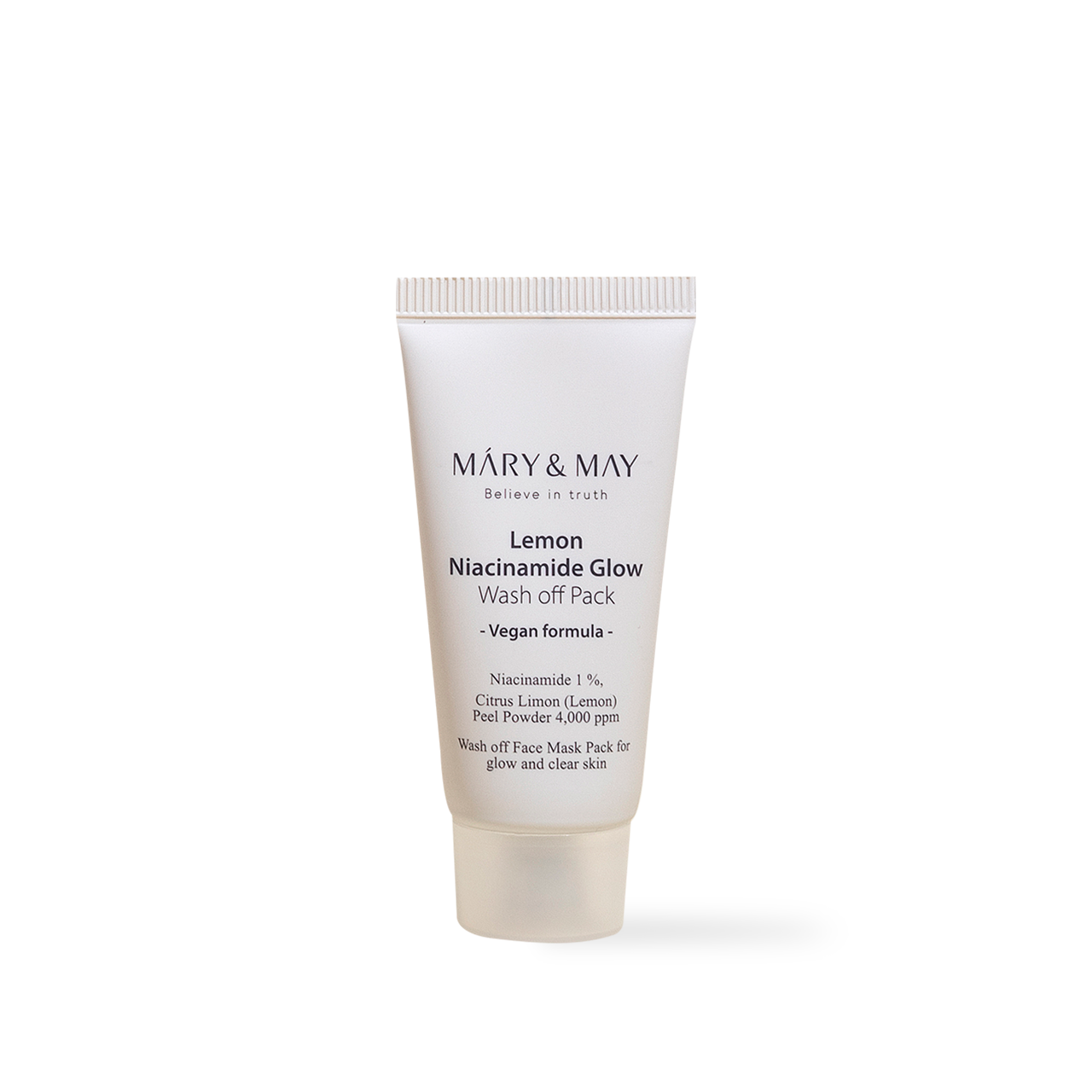 “Mary&May Lemon Niacinamide Glow Wash Off Pack, A wash-off pack containing real lemon peel and niacinamide + vitamin C to brighten dull and darkened skin and clean sebum and wastes, 125g”
