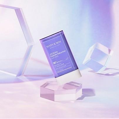 “Mary&May Vegan Peptide Bakuchiol Sun Stick SPF50+ PA++++ A fresh vegan sun stick that contains bakuchiol peptides for anti-aging beyond sun protection.”
